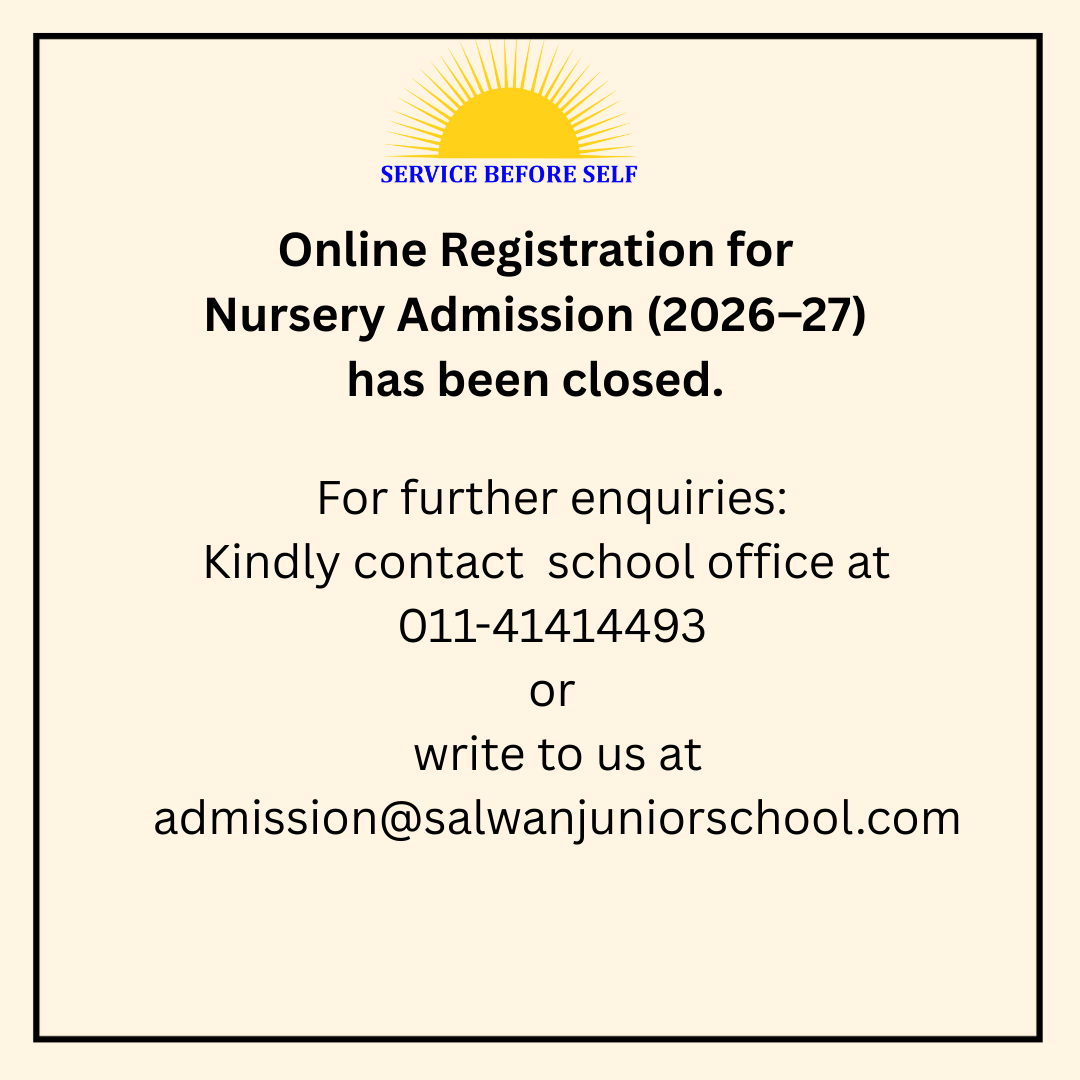 | 3. | School Alumni (Father/Mother) or Sibling | Children of parents who have passed class V from Salwan Junior School Naraina/passed out class XII from any of the schools under the aegis of Salwan Education Trust. |