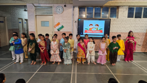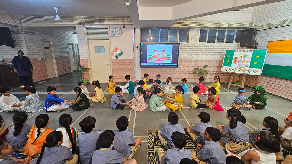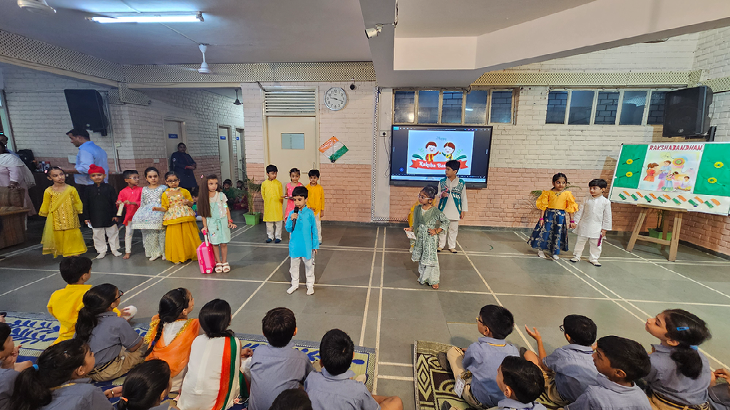 To continue the celebration, on August 17, 2024, the KG students also hosted a heartwarming Rakhi Special Assembly filled with joy and learning. The event began with melodious Rakhi-themed songs, setting a festive tone. A beautifully decorated Rakhi thali was presented, and students explained its significance. Dressed in vibrant traditional attire, they shared stories about the bond of siblings. A short story further deepened their understanding of Rakhi’s message of love and care, making the assembly unforgettable.